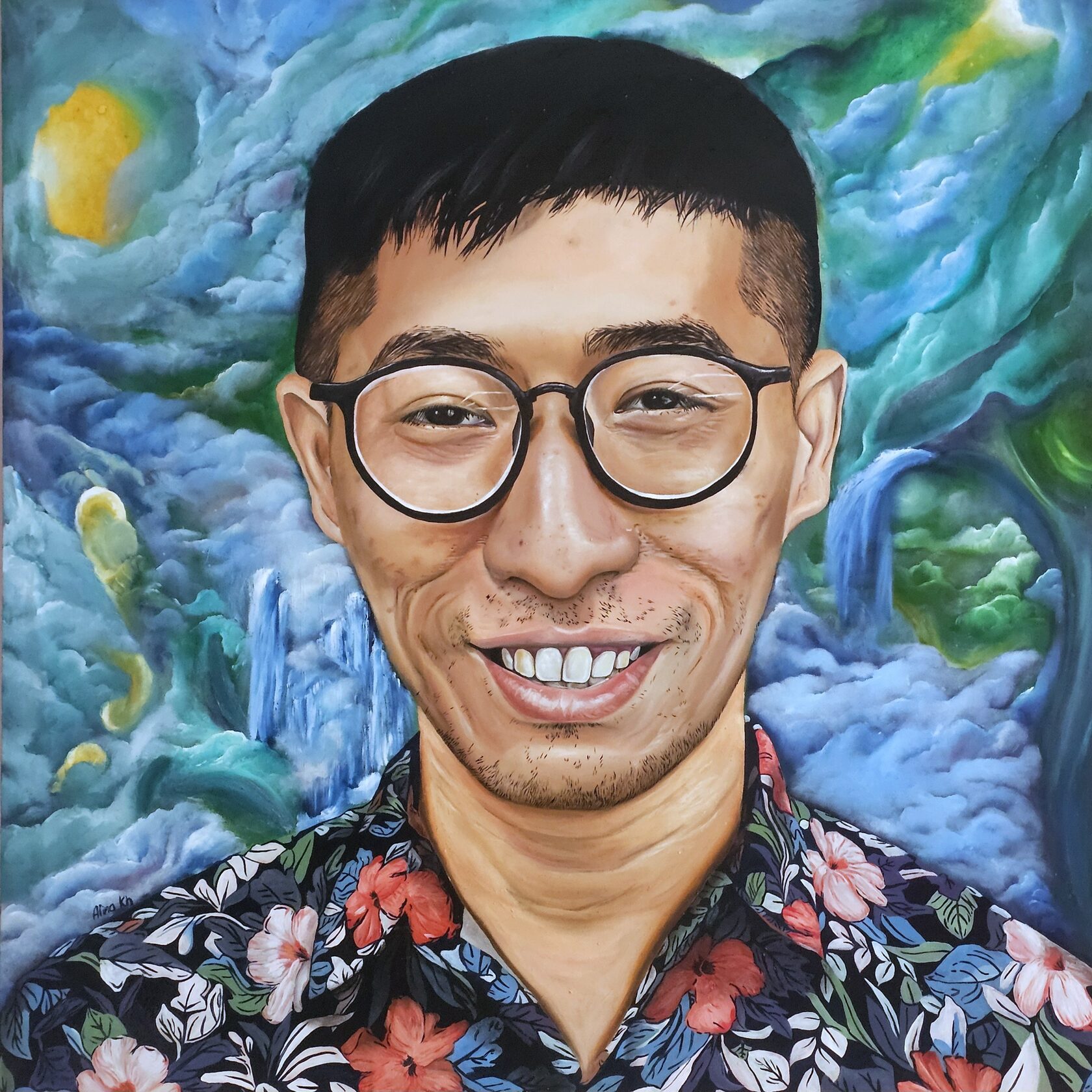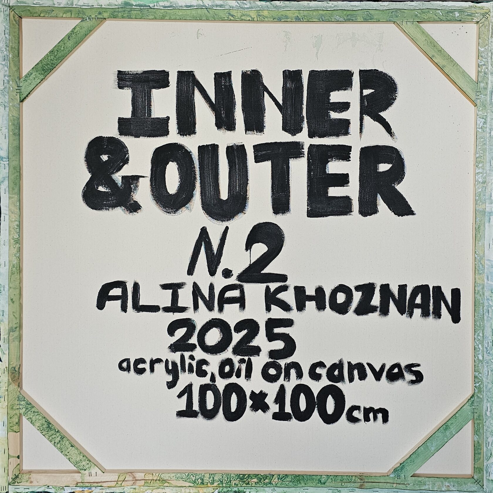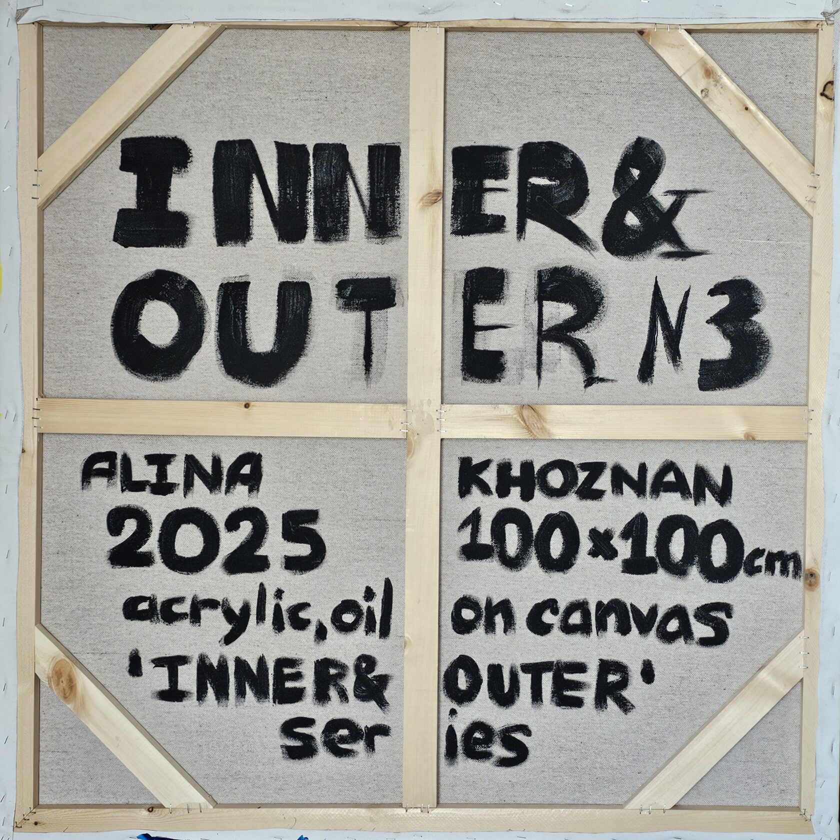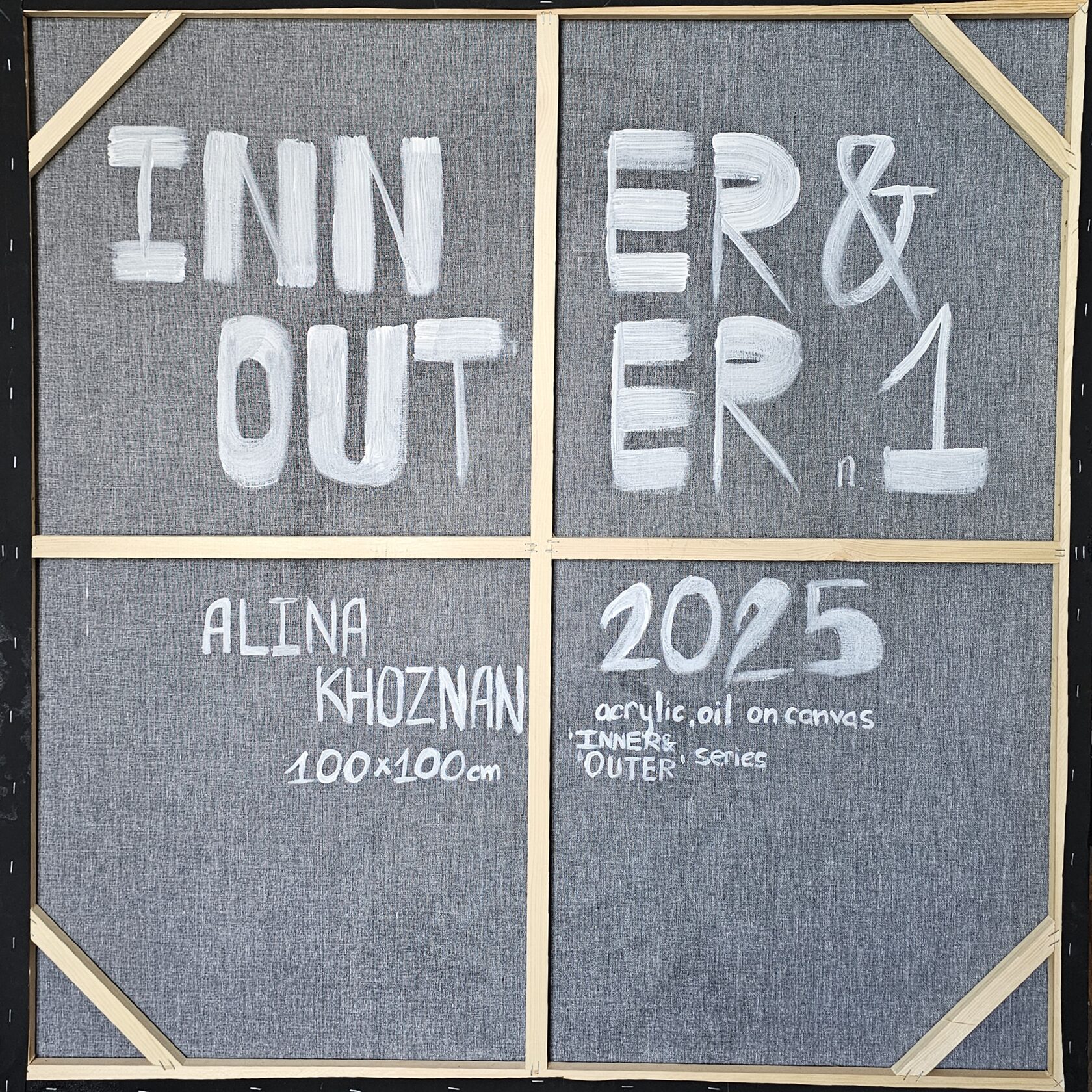 Year of creation 2025 Acrylics, oil on canvas. Varnished. Size 100 x 100 x 2 cm. Description: Inner and Outer is a series of paintings inspired by real people I meet while traveling. In this project, I explore the contrast between a person’s visible appearance and their unseen inner world as I intuitively perceive it. The central figure in each work is a hyperrealistic portrait that represents the outer world — the physical presence, the face others see. Surrounding and intersecting this portrait is the inner world — an abstract, atmospheric space that reflects the person’s aura, emotions, energy, and inner experiences, as if their inner reality were made visible. This encounter took place on my second day in Taipei, while my friend and I were sightseeing at Chiang Kai-shek Memorial Hall. We went downstairs and discovered an exhibition space dedicated to Chinese calligraphy and traditional watercolor painting. There, I met a woman who worked in the exhibition. She was deeply engaged in her work, and it was immediately clear how passionate she was about what she did. She eagerly shared stories, meanings, and details behind the artworks, and listening to her felt like watching the exhibition come alive through her words. I was especially drawn to the passion in her eyes — the quiet intensity and devotion to her craft. This painting is my attempt to capture her outer presence, as well as her inner world: the enthusiasm, knowledge, and love for art that defined our encounter.
