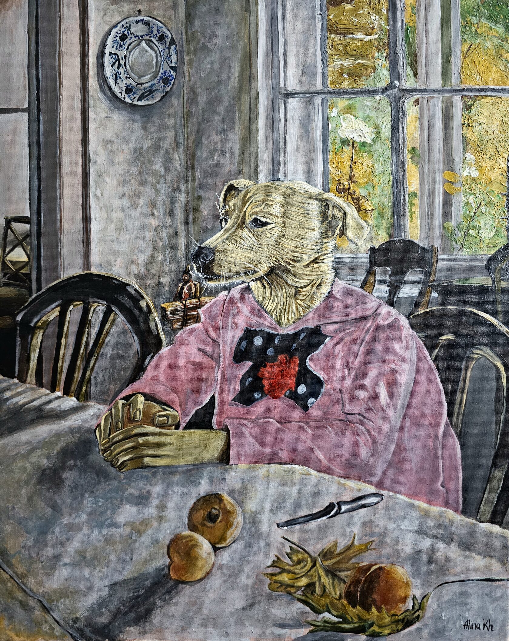 This work serves as a reminder that even in difficult times, it’s important to stay true to yourself, just as dogs do. While the painting brings a smile, its philosophical undertone remains intact.